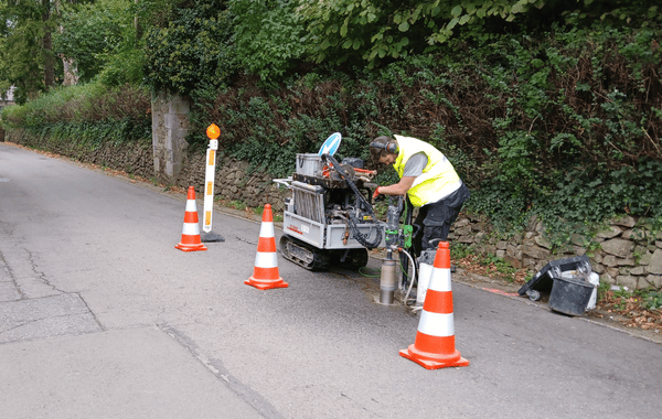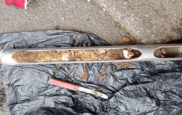 Un forage consiste à enfoncer des gouges creuses dans le sol jusqu’à la profondeur souhaitée pour en extraire des carottes de sol. Cette méthode permet d’obtenir des informations précises sur la structure géologique, la perméabilité et la qualité du sol.