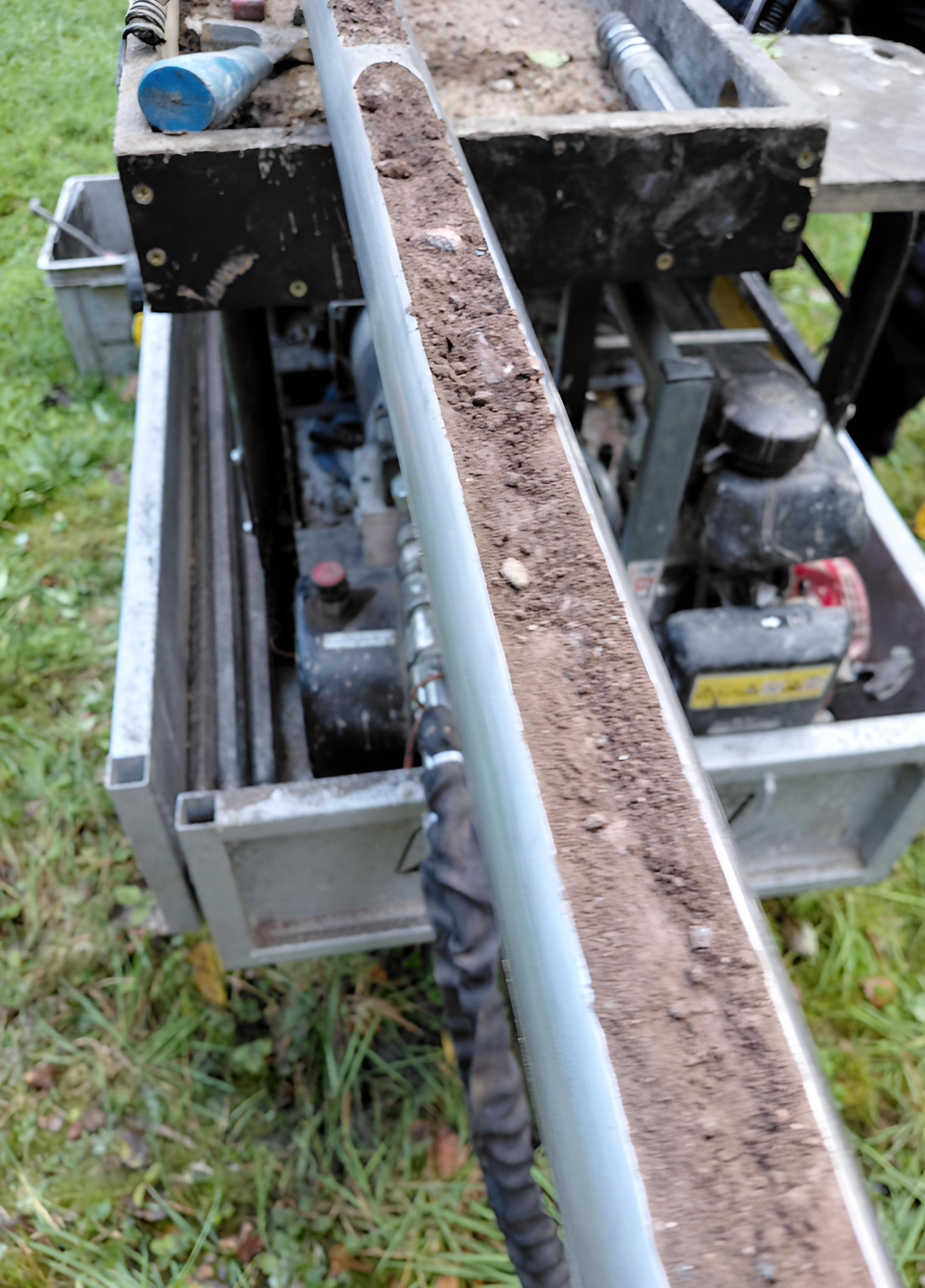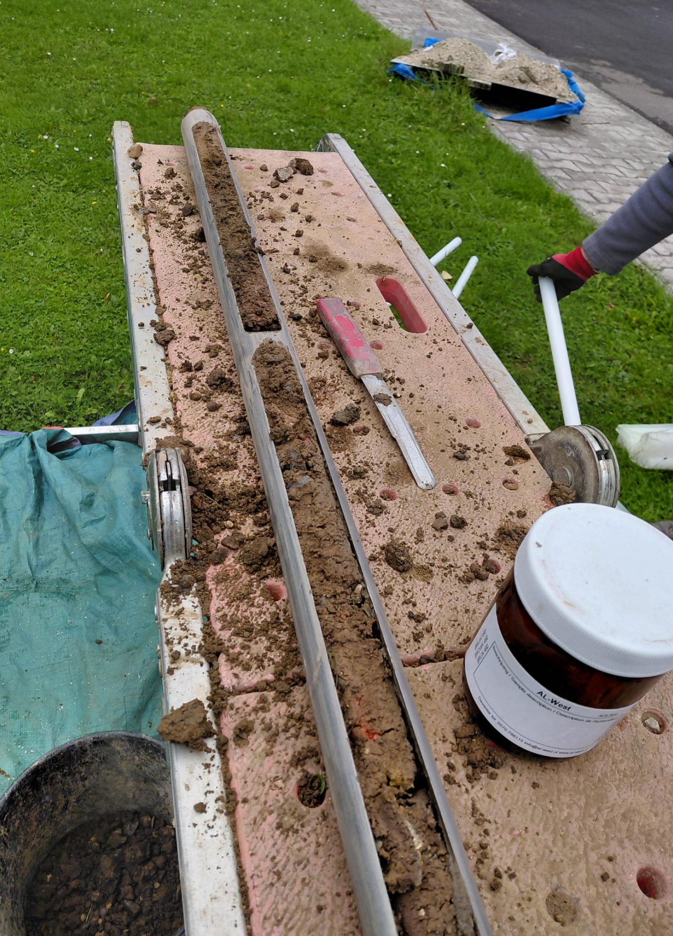 - Travaux réalisés à la gouge à percussion de type Makita par Aquaconseil, foreur et préleveur agréé par la Région wallonne.